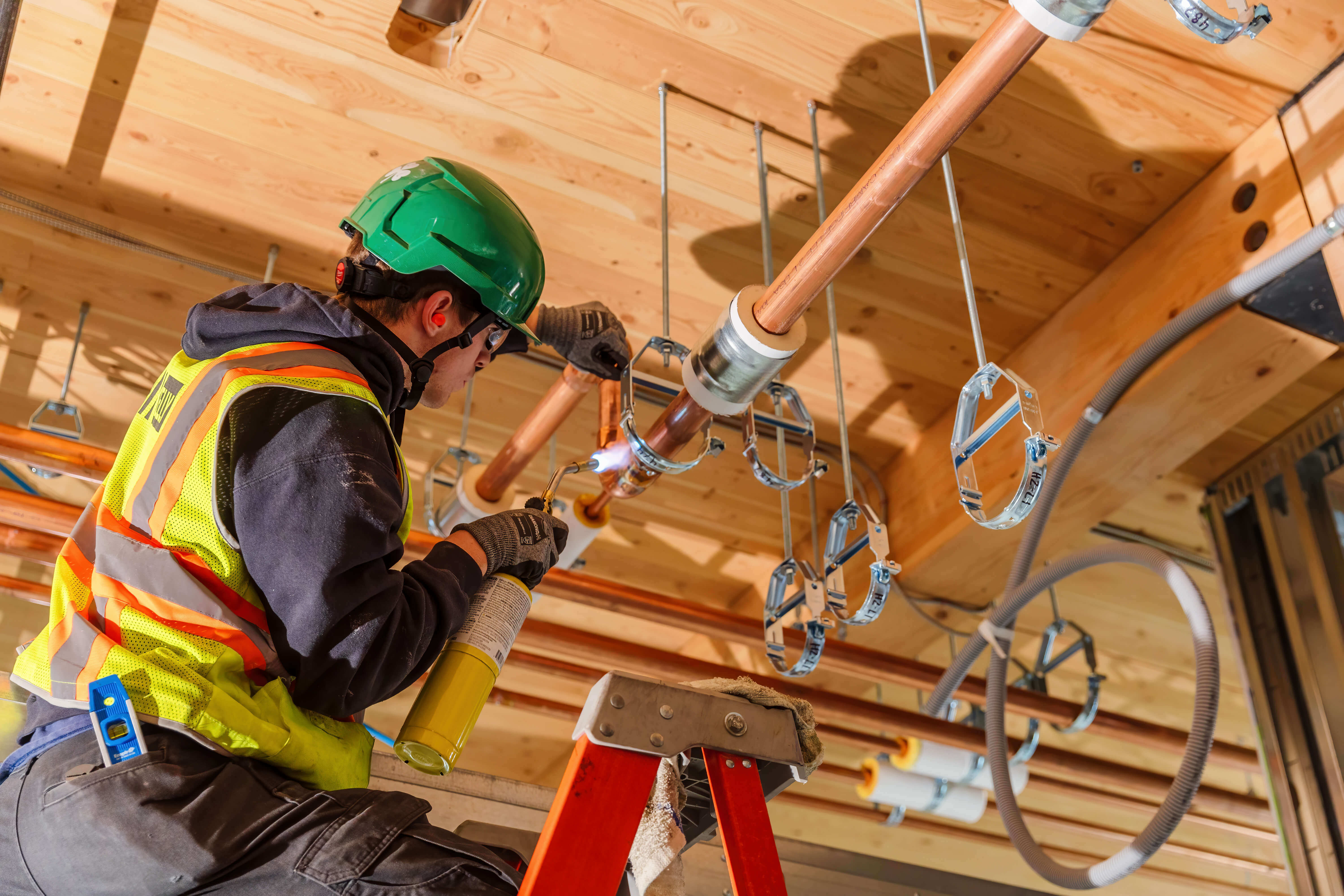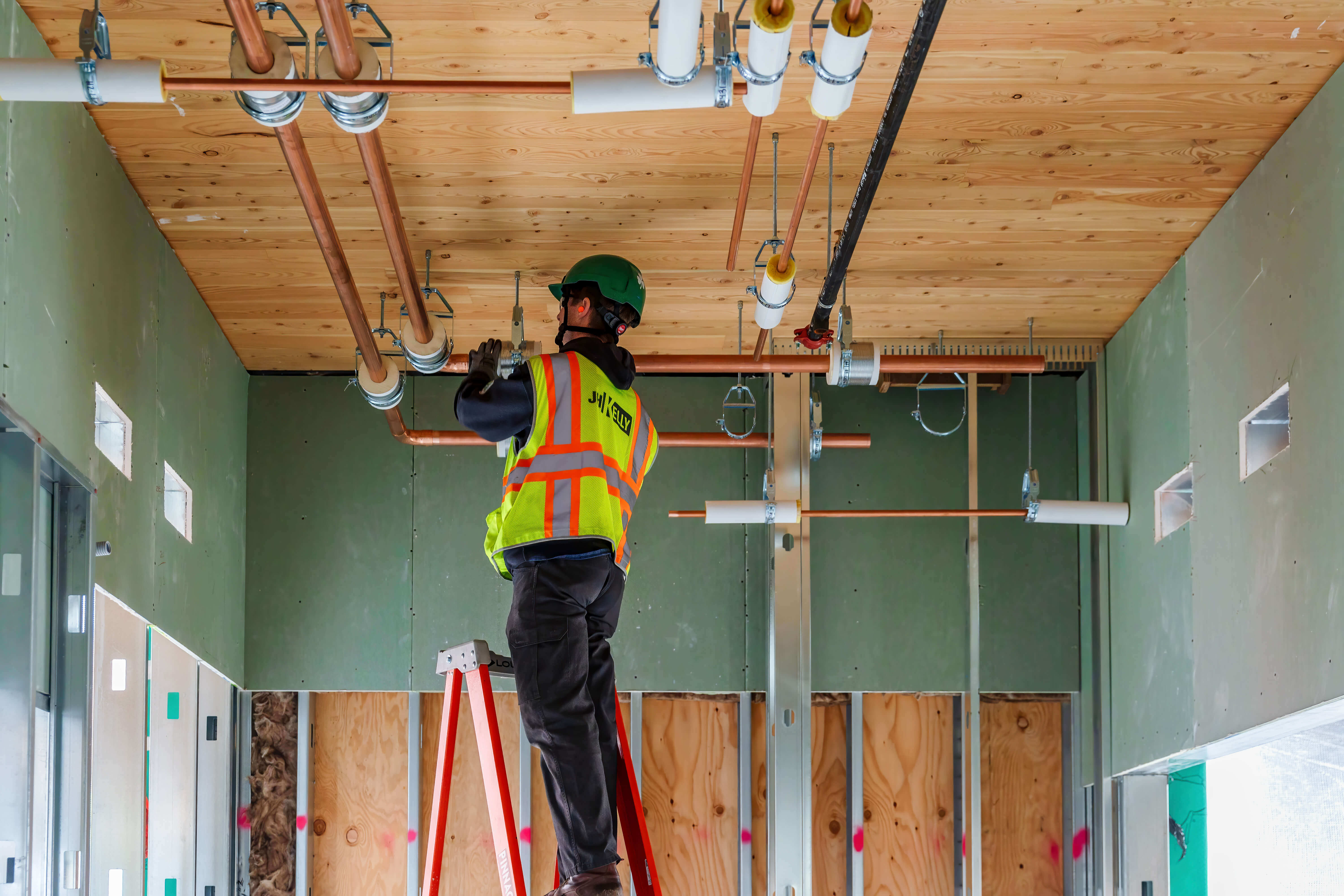 JH Kelly acted as the design/build contractor performing the mechanical, electrical, and plumbing scope for the construction of the two-story 35,240 sf Divine Academic Building and the 12,212 sf Hunter Gymnasium on an existing campus. Additionally, our team provided electrical improvements to 52,452 sf of existing interior and exterior space on the campus. The new construction utilized DeafSpace standards to facilitate the best educational environment for the deaf and hard of hearing students that the campus caters to. The Divine Academic Building utilized mass timber heavily and the completed project included solar panels, EV charging, existing ground loop system feeding a new heat recovery chiller, and achieved LEED Gold. An additional approximately 1,936 sf renovation was added to the project scope via change order facilitating the conversion of an existing auto shop to a STEM lab.