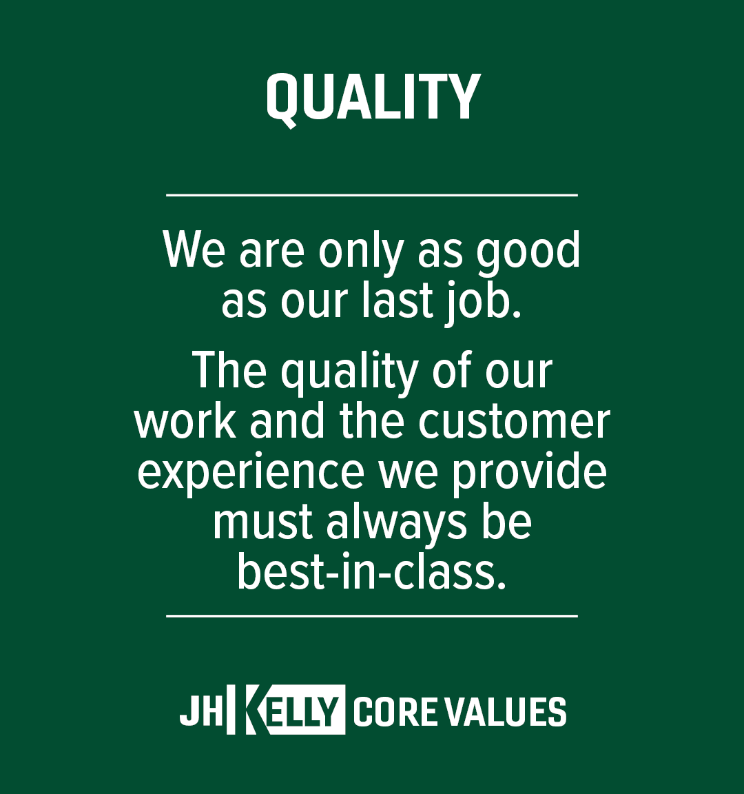 Additionally, we encourage engagement with those subcontractors that have met or exceeded performance criteria on previous JH Kelly projects. In practice, this results in subcontractor participation that falls in step with our ability to provide safety, quality, schedule, and cost certainty on projects.